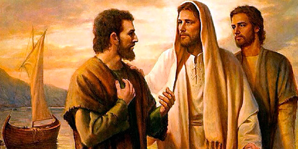 Uno de los dos que oyeron las palabras de Juan y siguieron a Jesús era Andrés, el hermano de Simón Pedro. Al primero que encontró fue a su propio hermano Simón, y le dijo: «Hemos encontrado al Mesías», que traducido significa Cristo. Entonces lo llevó a donde estaba Jesús. Jesús lo miró y le dijo: «Tú eres Simón, el hijo de Juan: tú te llamarás Cefas», que traducido significa Pedro.