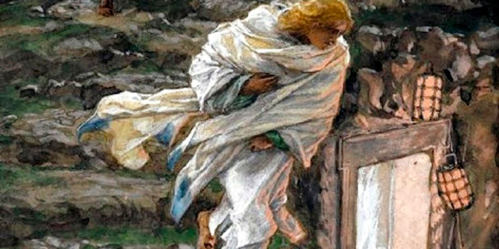 El primer día de la semana, María Magdalena corrió al encuentro de Simón Pedro y del otro discípulo al que Jesús amaba, y les dijo: «Se han llevado del sepulcro al Señor y no sabemos dónde lo han puesto.»