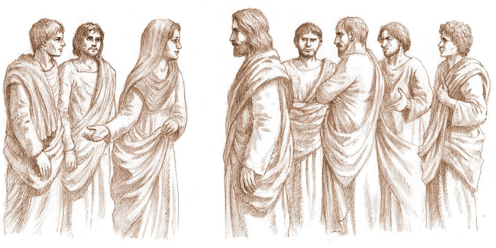 La madre de los hijos de Zebedeo se acercó a Jesús, junto con sus hijos, y se postró ante él para pedirle algo.