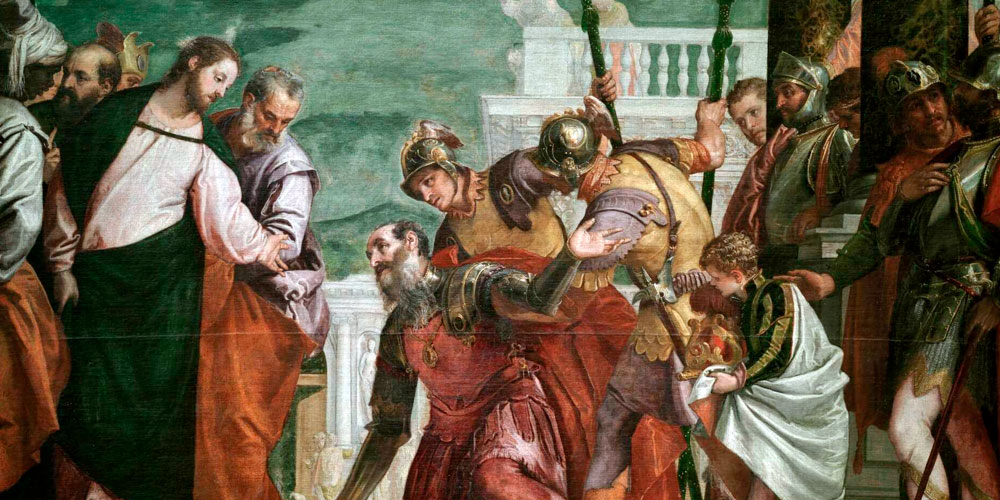 Al entrar en Cafarnaún, se le acercó un centurión, rogándole: «Señor, mi sirviente está en casa enfermo de parálisis y sufre terriblemente.» Jesús le dijo: «Yo mismo iré a curarlo.»