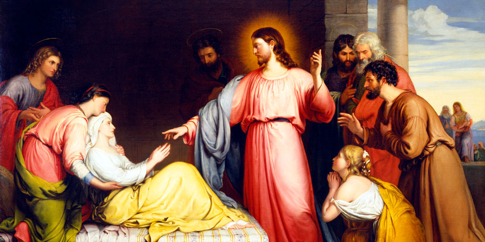Jesús fue con Santiago y Juan a casa de Simón y Andrés. La suegra de Simón estaba en cama con fiebre, y se lo dijeron de inmediato. Él se acercó, la tomó de la mano y la hizo levantar. Entonces ella no tuvo más fiebre y se puso a servirlos.