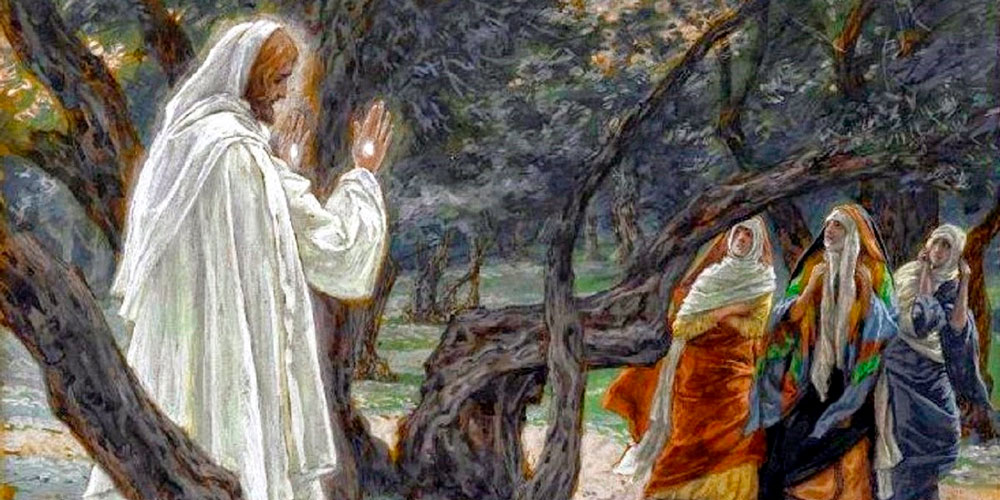 De pronto, Jesús salió a su encuentro y las saludó, diciendo: «Alégrense.» Ellas se acercaron y, abrazándole los pies, se postraron delante de él. Y Jesús les dijo: «No teman; avisen a mis hermanos que vayan a Galilea, y allí me verán.»