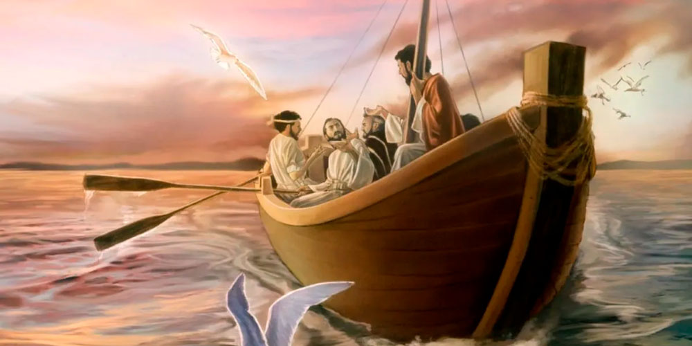 Jesús volvió a embarcarse hacia la orilla del lago.