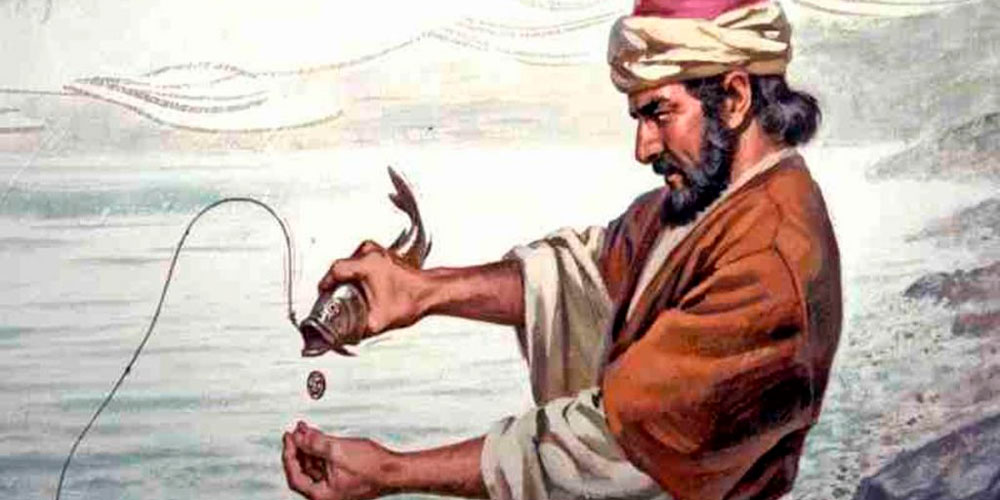 Sin embargo, para no escandalizar a esta gente, ve al lago, echa el anzuelo, toma el primer pez que salga y ábrele la boca. Encontrarás en ella una moneda de plata: tómala, y paga por mí y por ti.»