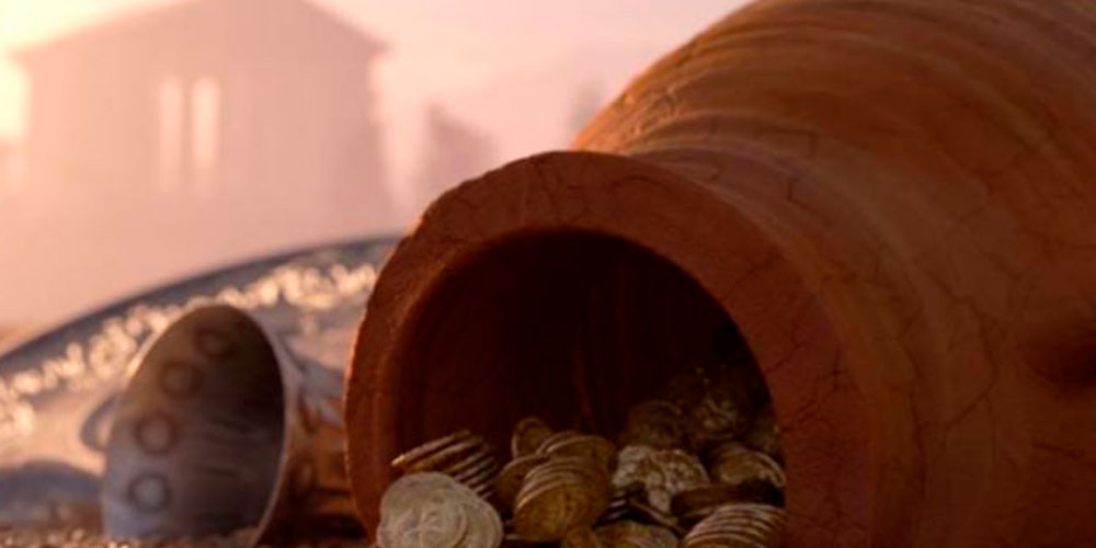 «El Reino de los Cielos se parece a un tesoro escondido en un campo; un hombre lo encuentra, lo vuelve a esconder, y lleno de alegría, vende todo lo que posee y compra el campo.