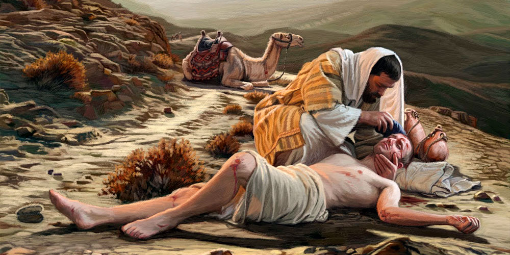Jesús volvió a tomar la palabra y le respondió: «Un hombre bajaba de Jerusalén a Jericó y cayó en manos de unos ladrones, que lo despojaron de todo, lo hirieron y se fueron, dejándolo medio muerto. Casualmente bajaba por el mismo camino un sacerdote: lo vio y siguió de largo. También pasó por allí un levita: lo vio y siguió su camino. Pero un samaritano que viajaba por allí, al pasar junto a él, lo vio y se conmovió. Entonces se acercó y vendó sus heridas, cubriéndolas con aceite y vino; después lo puso sobre su propia montura, lo condujo a un albergue y se encargó de cuidarlo. Al día siguiente, sacó dos denarios y se los dio al dueño del albergue, diciéndole: “Cuídalo, y lo que gastes de más, te lo pagaré al volver.”