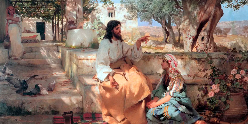 Jesús entró en un pueblo, y una mujer que se llamaba Marta lo recibió en su casa. Tenía una hermana llamada María, que sentada a los pies del Señor, escuchaba su Palabra.