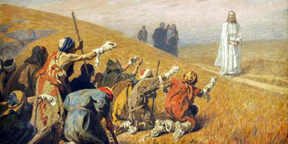 Mientras se dirigía a Jerusalén, Jesús pasaba a través de Samaría y Galilea. Al entrar en un poblado, le salieron al encuentro diez leprosos, que se detuvieron a distancia y empezaron a gritarle: «¡Jesús, maestro, ten compasión de nosotros!»
