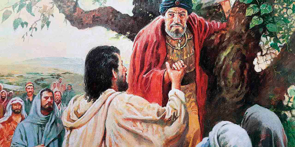 Jesús entró en Jericó y atravesaba la ciudad. Allí vivía un hombre muy rico llamado Zaqueo, que era el jefe de los publicanos. El quería ver quién era Jesús, pero no podía a causa de la multitud, porque era de baja estatura. Entonces se adelantó y subió a un sicomoro para poder verlo, porque iba a pasar por allí.