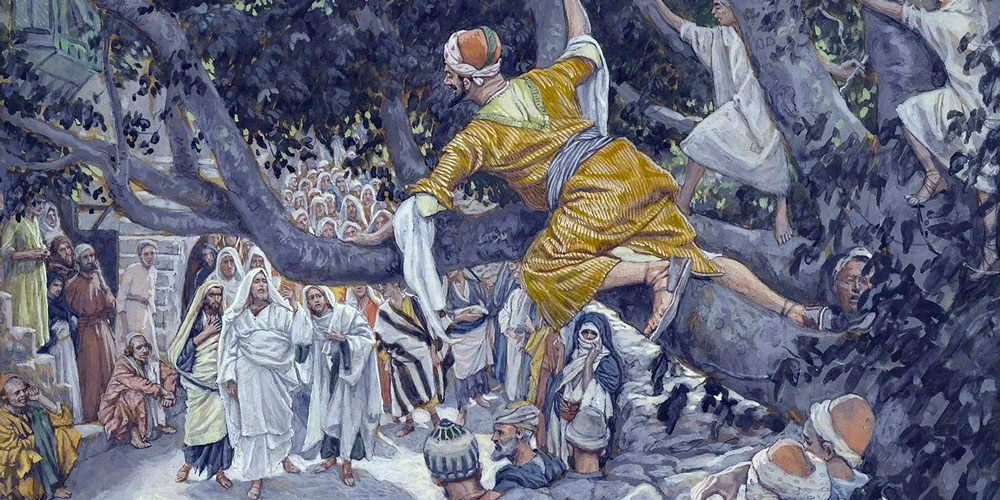 Jesús entró en Jericó y atravesaba la ciudad. Allí vivía un hombre muy rico llamado Zaqueo, que era el jefe de los publicanos. El quería ver quién era Jesús, pero no podía a causa de la multitud, porque era de baja estatura. Entonces se adelantó y subió a un sicomoro para poder verlo, porque iba a pasar por allí.
